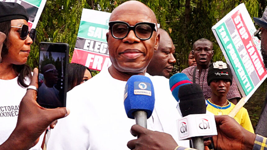 Amaechi joined demonstrators demanding real-time electronic transmission of election results, following the Senate’s rejection of the proposal in the electoral reform process.