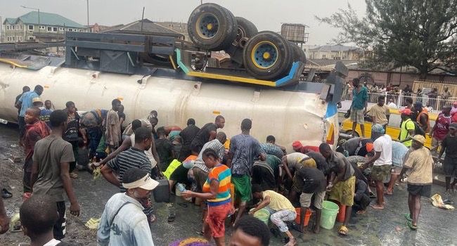 Nigeria was once again reminded of a dangerous culture we keep ignoring. On Monday, a diesel tanker fell at Liverpool Bridge in Apapa, Lagos. Instead of people running away or allowing emergency agencies to do their work, some residents rushed to scoop fuel from the fallen tanker.